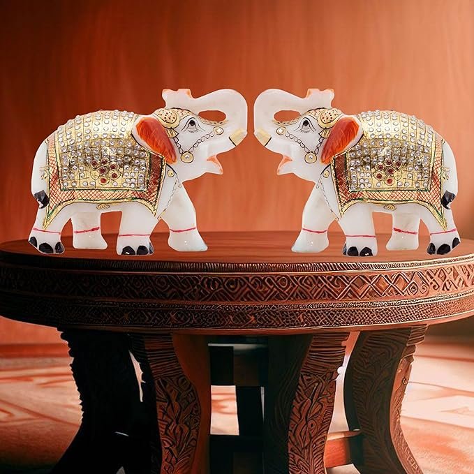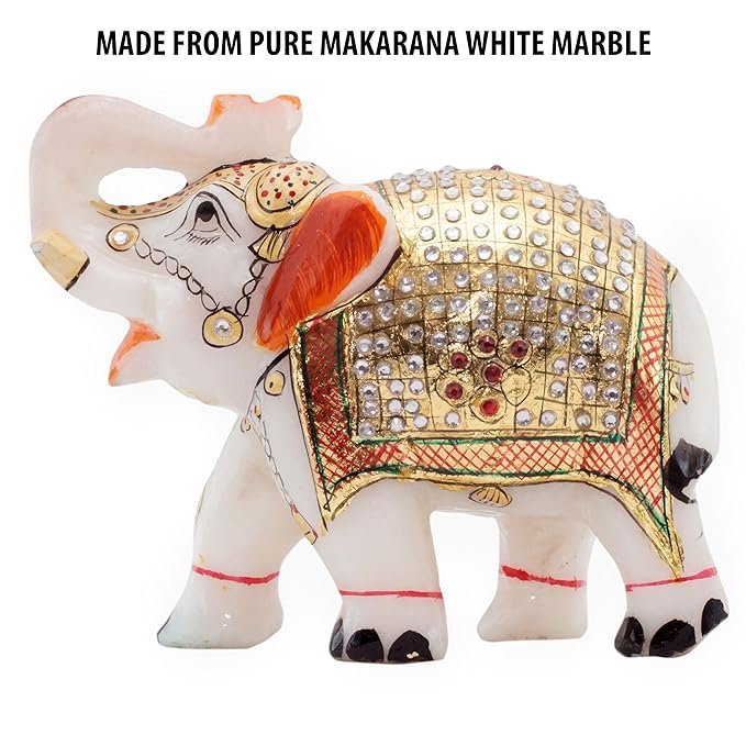 Enduring Elegance and Sustainability: This 5 inch * 6 inch large marble elephant home décor showpiece is made of pure Makrana marble, ensuring long-lasting quality and sustainability. With careful care, it will remain in pristine form for decades, becoming a cherished family heirloom that tells stories of history and culture. Cleaning and removing dust is simple. This intriguing sculpture, crafted with passion and precision by expert artisans, will transform your home or office decor.