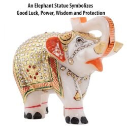 Positive Energy and Serenity: Incorporate the ancient wisdom of Vastu Shastra into your home’s living spaces by installing this marble elephant. The marble promotes a natural flow of positive energy, fostering harmony and tranquility in your surroundings and providing a peaceful environment for relaxation and renewal. In an office, the elephant statue represents knowledge and power and is intended to energize the space.