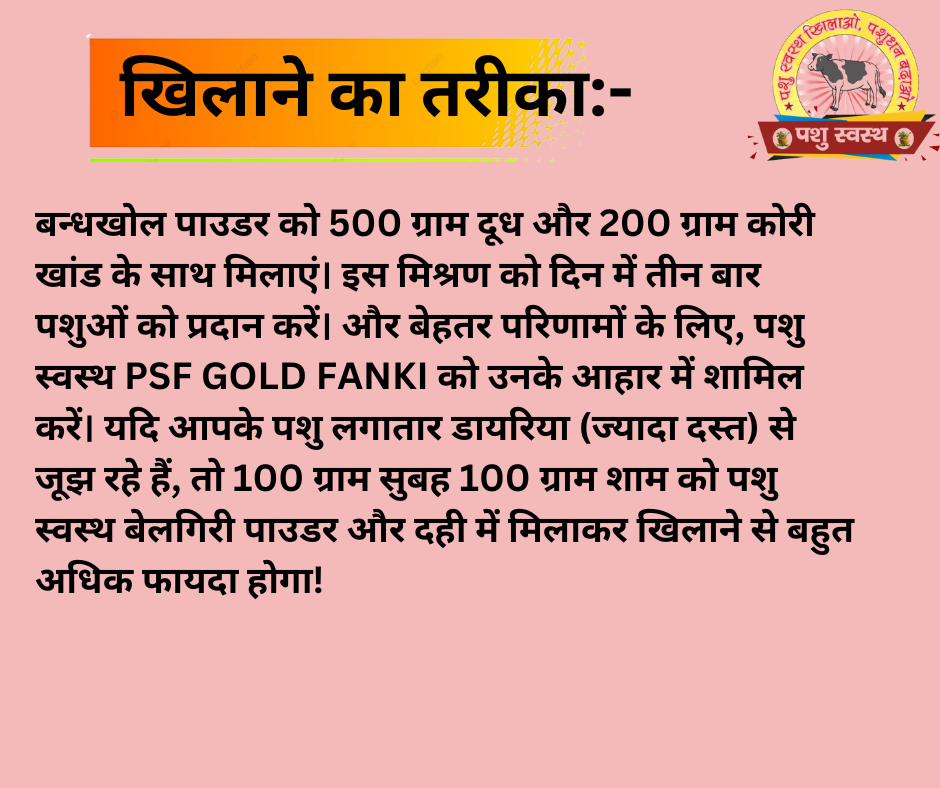 Note:- For Better Result feed the Pashu Svasth PSF GOLD FANKI.