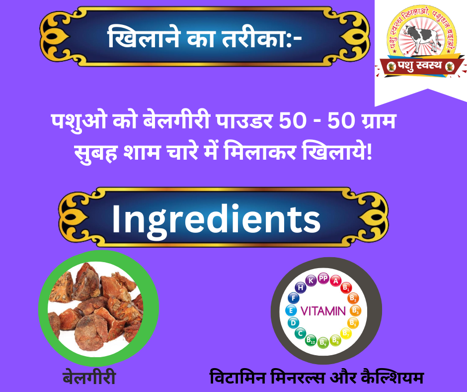 Feeding method: Feed 50-50 grams in the morning and evening mixed with ANIMAL FEED or chaat.