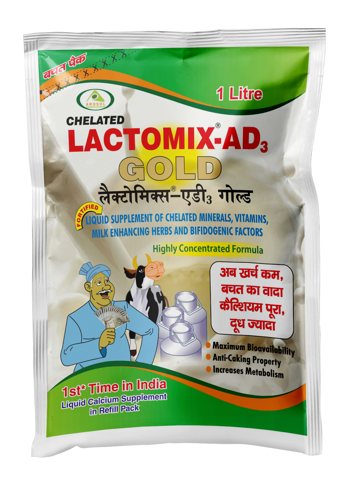 LACTOMIX-AD3Â GOLDÂ is the Best Chelated Liquid Calcium Supplement for Dairy Animals, formulated to enhance milk production and support overall health. It contains chelated calcium blended with essential vitamins, bifidogenic factors, and milk-enhancing herbs that work together to boost lactation naturally and effectively.
