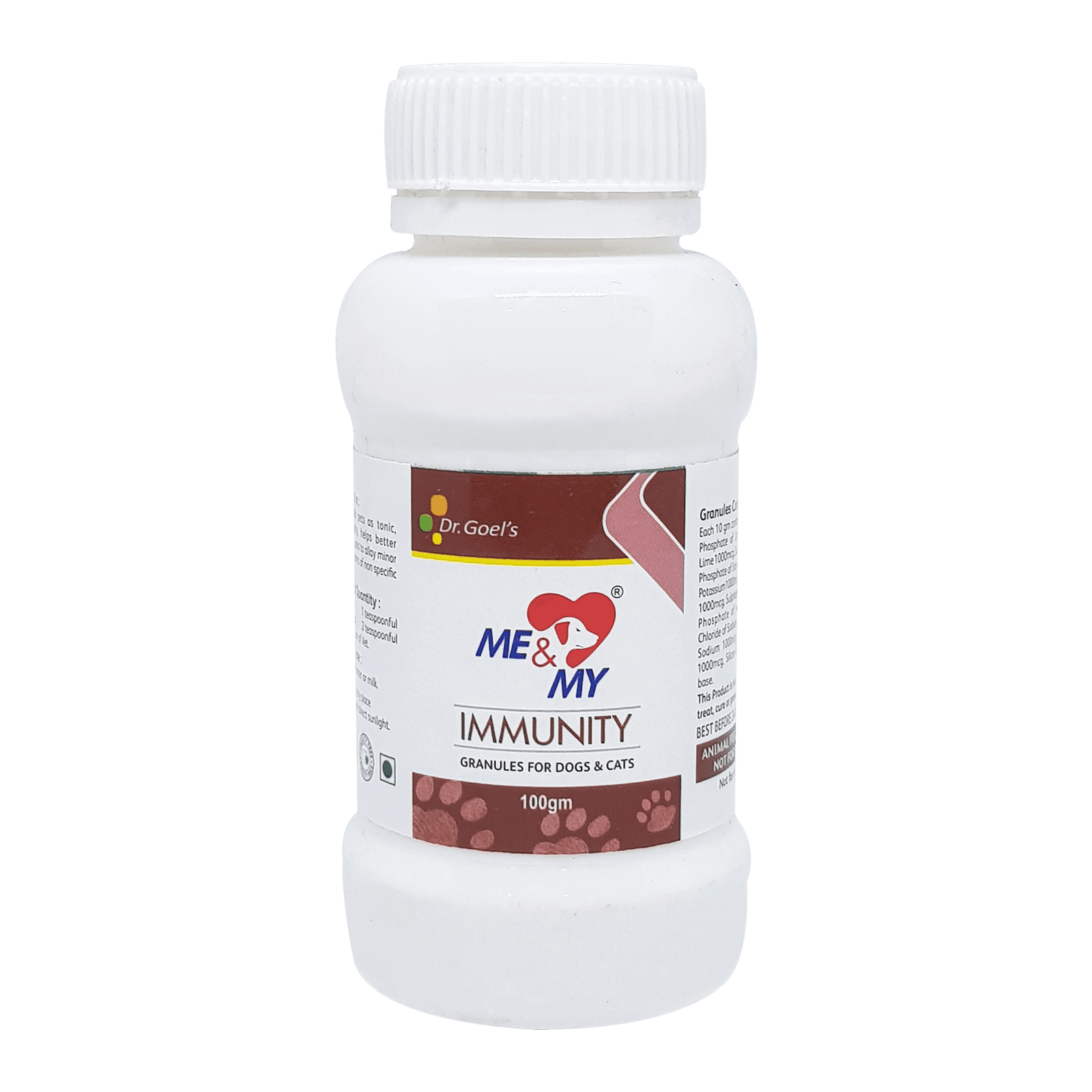 Me & My IMMUNITY Pet Supplement is a unique formula of valuable supplements for Dogs & Cats which help in maintaining and raising the IMMUNITY of your lovable pets. It is made for weak and old pets as it improves immunity, helps better utilization of food, and allay minor ailments or complaints of non-specific nature. It also gives strength to the body’s mechanism for fighting against germs of all kinds.