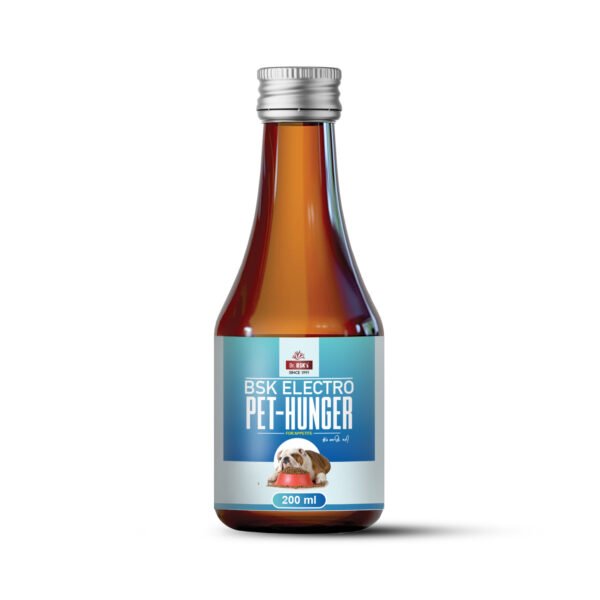 Dr. BSK Electro-Pet Hunger is a natural tonic for dogs and cats that boosts appetite, supports digestion, protects the liver, and promotes overall health. It’s given at 0.5 ml per kg of body weight once daily and is claimed to be safe with no side effects. Ideal for pets with low appetite or recovering from illness.